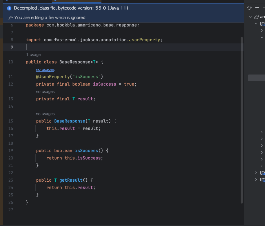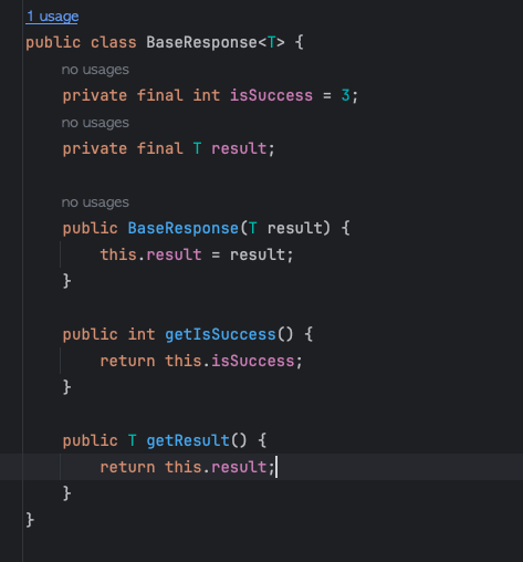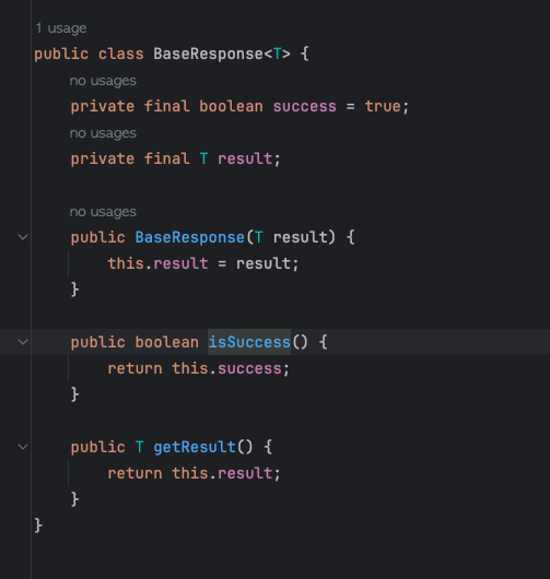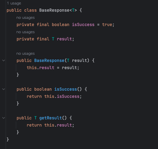 아무튼 각설하고, 이 기본 응답엔 isSuccess 필드가 하나 있어서